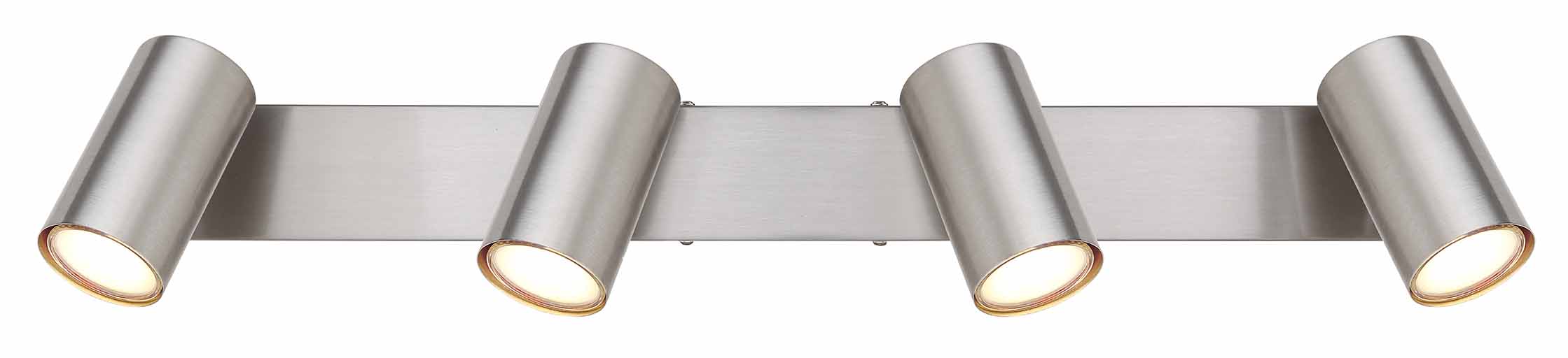 Bringen Sie Ihr Interieur zum Strahlen mit diesem minimalistischen Spotlight aus der Robby-Kollektion. Mit einer rechteckigen, nickelbeschichteten Deckenmontage von 56×6 cm bietet diese Beleuchtung Platz für vier zylindrische Schirme, die jeweils eine GU10-Fassung haben. Die einzigartige Funktion der GU10-Fassung ermöglicht es Ihnen, die Lichtquellen nach Ihren Vorlieben auszuwählen, mit einer maximalen Leistung von bis zu 35 Watt. Mit sowohl der Ästhetik als auch der Vielseitigkeit dieses Spotlights wird es Ihnen leicht fallen, jeden Raum in Ihrem Zuhause zu beleuchten und zu verschönern.