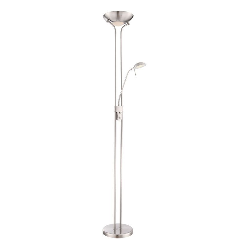 <p Diese stilvolle und multifunktionale 180 cm Lampe ist ein echter Blickfang in jedem Interieur. Mit einer Deckenwaschlampe und einer flexiblen Leselampe ist sie ein äußerst vielseitiges Beleuchtungselement. Das elegante Gestell in nickelmattem Finish wird durch das satinierte Glas verschönert, während der integrierte Dimmer für eine anpassbare Stimmungbeleuchtung sorgt. Die Lampe gibt kraftvolle 1440 Lumen und sanftere 360 Lumen ab, beide in einem gemütlichen warmweißen Licht von 3000K.