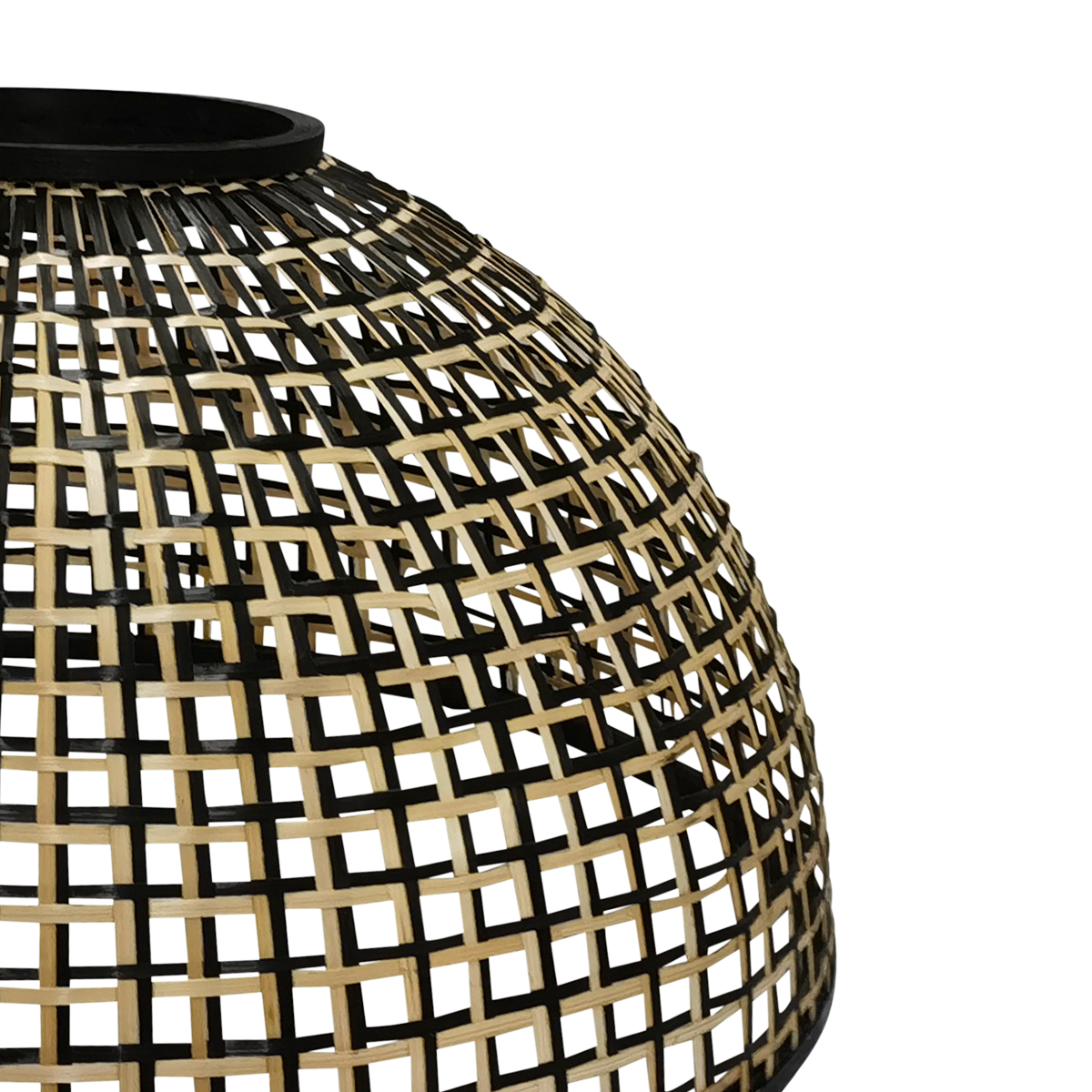 Dieser geflochtene Lampenschirm aus Bambus sorgt für eine warme und natürliche Ausstrahlung im Interieur. Das offene Geflecht lässt das Licht auf verspielte Weise durch und schafft ein stimmungsvolles Lichtbild an Wänden und Decke. Die runde Form und die Verwendung natürlicher Materialien machen diesen Schirm zu einer schönen Wahl für einen bohemian, skandinavischen oder natürlichen Wohnstil.