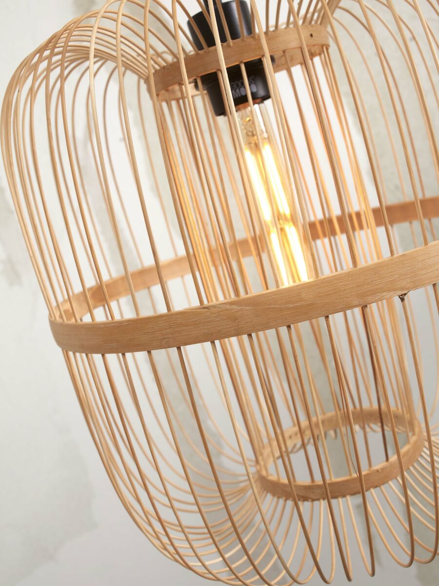 Ostliche Stehlampe aus natürlichem Bambus, geeignet für Esszimmer, Schlafzimmer oder Wohnzimmer. Ausgestattet mit einer großen E27-Fassung und staubdicht (IP20). Diese Lampe vereint rustikalen Charme mit einem exotischen Aussehen, ideal für ein stimmungsvolles und stilvolles Interieur.