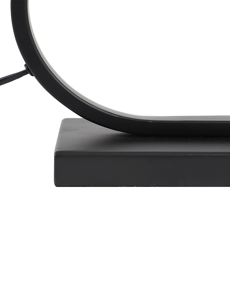 Eine trendige schwarze Tischlampe, die mit einem Lampenschirm nach persönlichen Belieben. Der Metallrahmen ist in einem matten Schwarz lackiert, wodurch die Lampe perfekt zu modernen und industriellen Räumen passt. Die Tischlampe hat einen ovalen Metallrahmen. Ein schönes Lampenmodell, das als Leselicht oder als Stimmungsmacher für einen Beistelltisch verwendet werden kann.