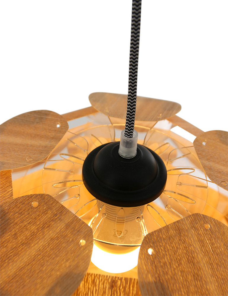 Mögen Sie warme und verspielte Akzente in Ihrer Einrichtung? Dann haben wir die perfekte Lampe für Sie! Die Pendelleuchte ist von der Marke Mexlite und aus der Finn-Kollektion. Der Lampenschirm ist eine Kugel die an eine Blume erinnert. Durch das Holz hat die Lampe eine warme und ruhige Ausstrahlung. Sie erzeugt ein sehr angenehmes und gemütliches Licht. Daher eignet sich diese Pendelleuchte perfekt für Ihr Schlafzimmer oder auch für Ihr Wohnzimmer.