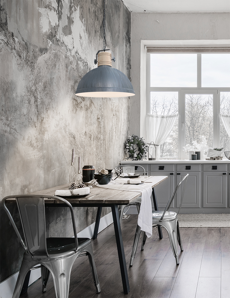Pendelleuchte industrielles Design Mexlite Gearwood grau