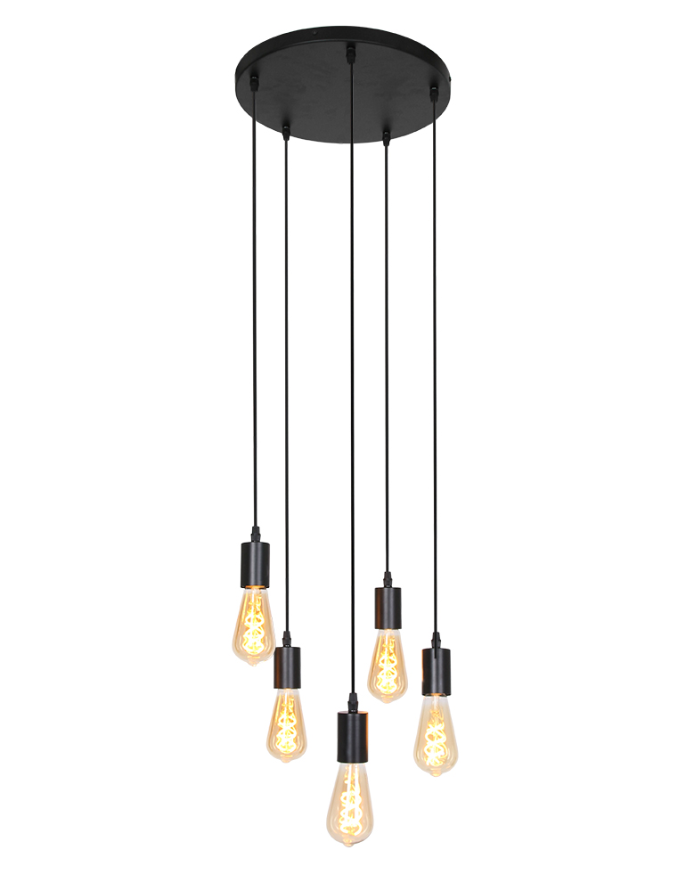 Diese Pendelleuchte ist von der Marke Light & Living. Mögen Sie verspielte Akzente in Ihrem Haus? Dann ist diese Lampe perfekt für Sie geeignet! Die Lampe hat eine runde Deckenplatte. Aus dieser hängen fünf Lampen auf unterschiedlicher Höhe. Durch die schwarze Farbe bekommt die Pendelleuchte eine moderne Ausstrahlung. Die Lampe ist ein echter Hingucker!