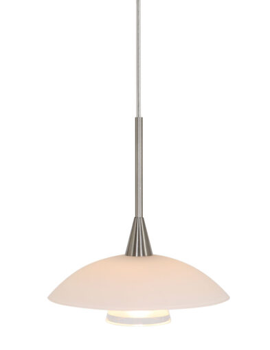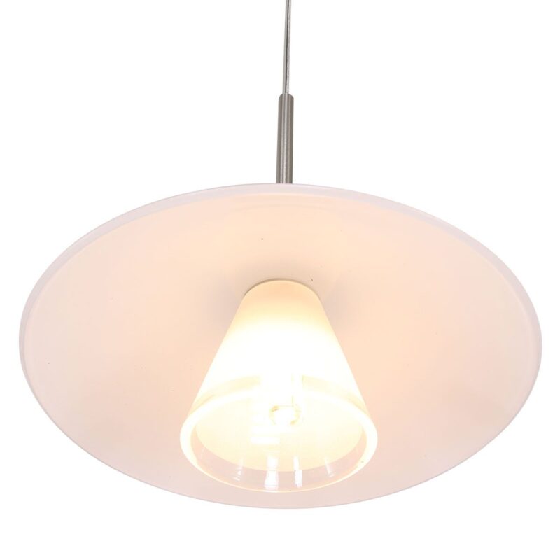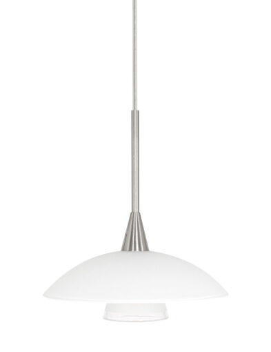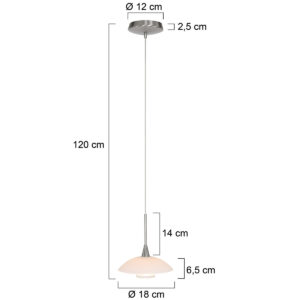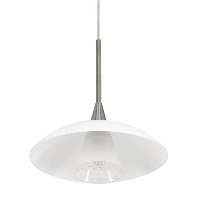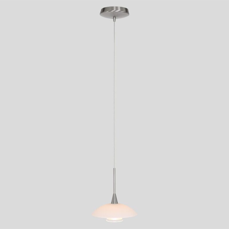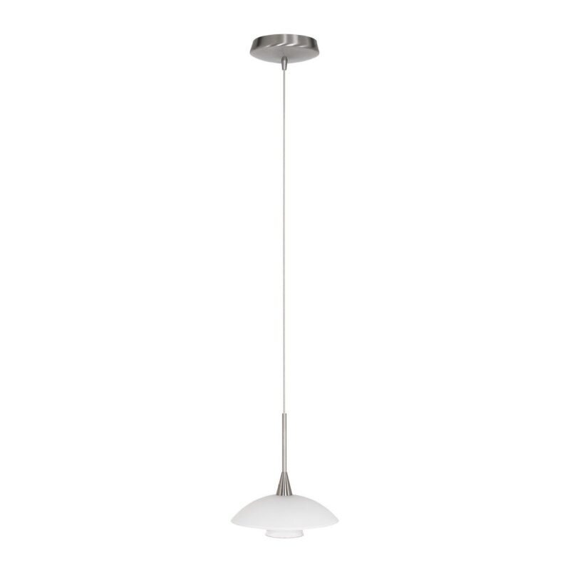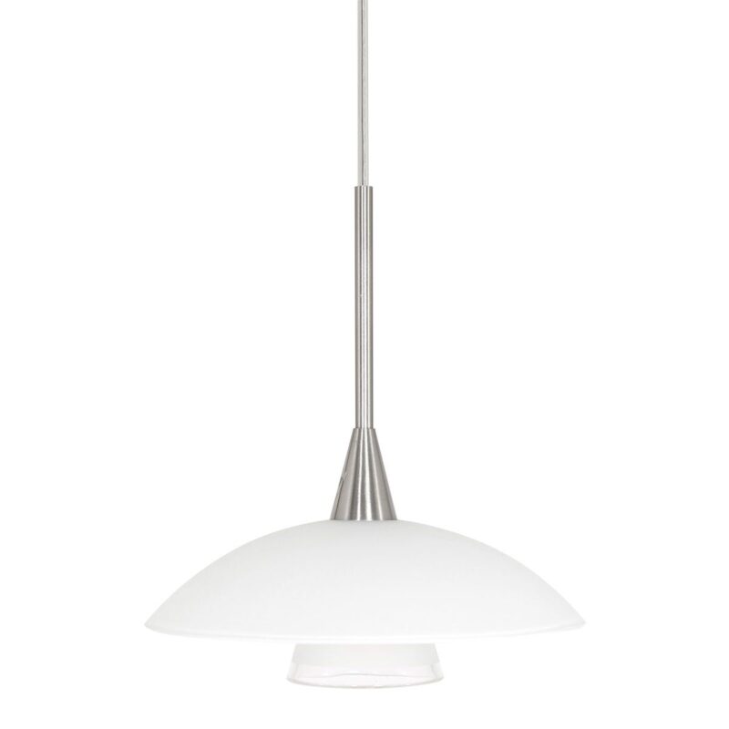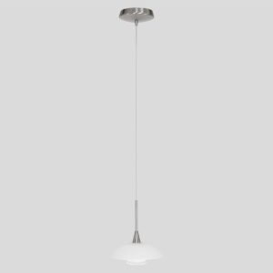 Die stahlfarbene Hängeleuchte aus der Tallerken LED-Serie hat eine elegante Formgebung mit einer weißen Glasschale und einem verchromten Akzent. Die Lampe wird mit einer integrierten LED-Lichtquelle von 3 Watt geliefert, die eine Lichtausbeute von 300 Lumen und eine warme Lichtfarbe von 2700 Kelvin bietet. Dimmbar mit einem externen Dimmer (nicht im Lieferumfang enthalten) für eine einstellbare Lichtstärke.
