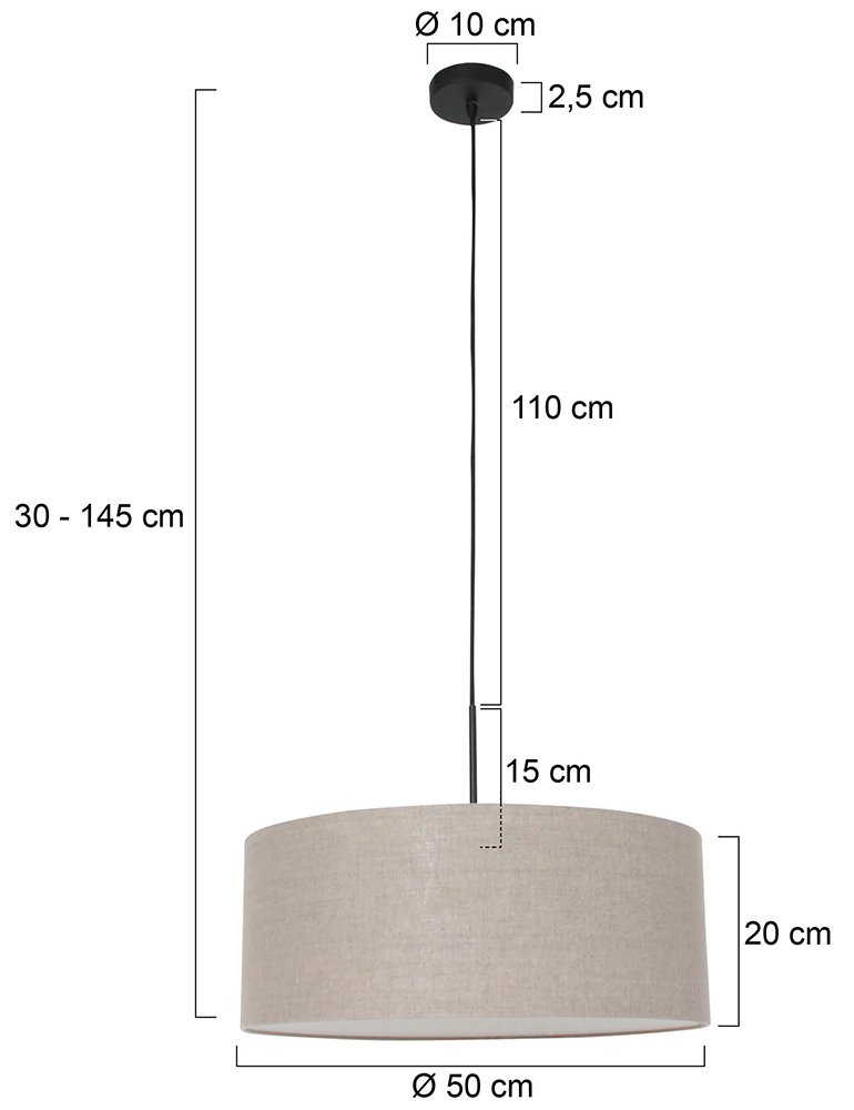 Der taupefarbene Schirm verleiht eine natürliche und zeitlose Ausstrahlung. Egal, ob du eine warme Atmosphäre im Esszimmer schaffen oder eine beruhigende Stimmung im Schlafzimmer erzeugen möchtest, diese Lampe fügt sich mühelos in verschiedene Wohnstile ein.