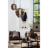 Mit Silber haben Sie viele Möglichkeiten. Dieser Farbton kann mit nahezu allem fusionieren und ist sehr anpassungsfähig. Sie können den silbernen Anhänger wirkungsvoll mit der bestehenden Einrichtung ergänzen. Und Silber entfaltet in den Räumen eine besondere Wirkung. Verbinden Sie doch einmal den silbernen Anhänger mit einer ähnlichen Lampe in Kupfer. Und drapieren Sie auf dem Sofa silberne Kissen. Wählen Sie auch passend zur Pendelleuchte in Silber eine schöne Stehlampe und eine Tischlampe im gleichen Farbton. Mit diesem schönen Ensemble ist Ihnen eine harmonische Einrichtung gelungen. Mit der Pendelleuchte in Silber erzeugen Sie ein edles und harmonisches Raumambiente. Diese Hängelampe in Silber eignet sich für jedes Zimmer.