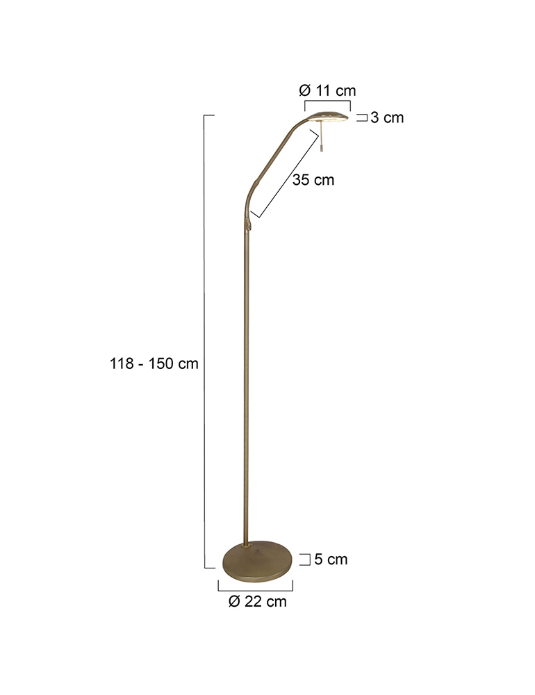 Die klassische Messingfarbene Stehlampe Zenith von Steinhauer verbindet zeitlose Eleganz mit moderner Beleuchtungstechnologie. Ausgestattet mit einem LED-Modul von 6 Watt und einer Lichtausbeute von 700 Lumen. Die einstellbare Lichtfarbe variiert zwischen 2200 und 4000 Kelvin, sodass du immer die richtige Atmosphäre schaffen kannst.