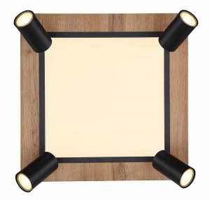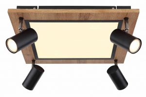 Quadratische Deckenlampe schwarz/braun mit 4 Spots Globo Ulla