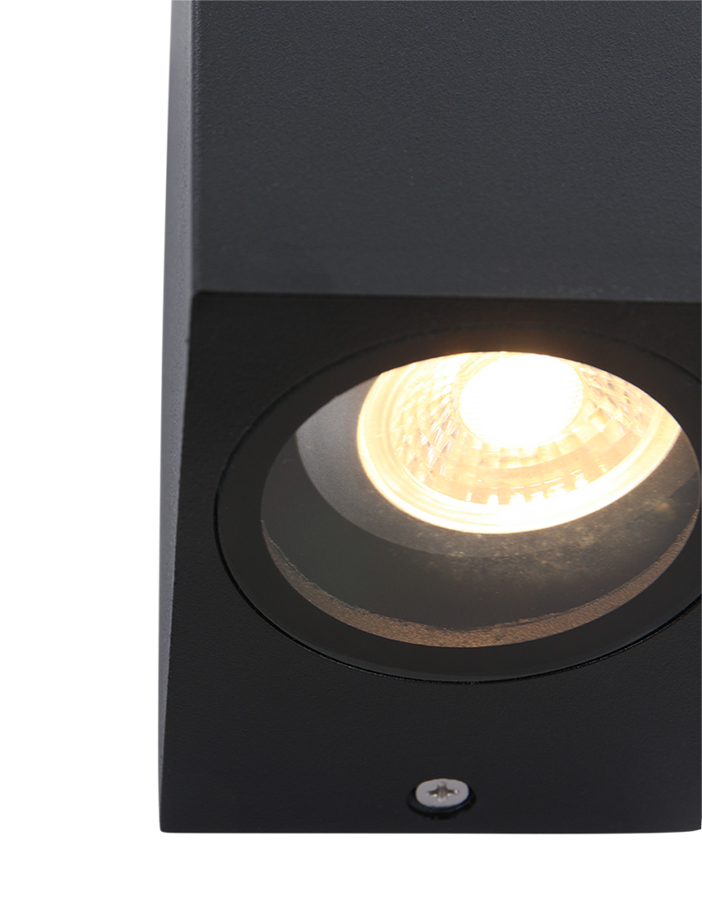 Die Francisco hat eine kompakte Form mit einer Tiefe von 7 cm und einer Höhe von 15 cm. Das Gehäuse besteht aus Aluminium und ist mit einer Glasplatte versehen. Der kraftvolle Lichtstrahl beleuchtet dein Haus und deinen Garten auf effiziente Weise. Diese Außenlampe wird inklusive 2 GU10-Leuchtmitteln (345 Lumen, 2700 Kelvin) geliefert. Dank der IP54-Bewertung ist die Lampe spritzwassergeschützt und staubdicht, was sie perfekt für den Außeneinsatz macht.
