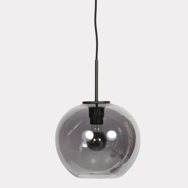 Schwarze Hängeleuchte mit Rauchglaskugel Mexlite HaloSwap