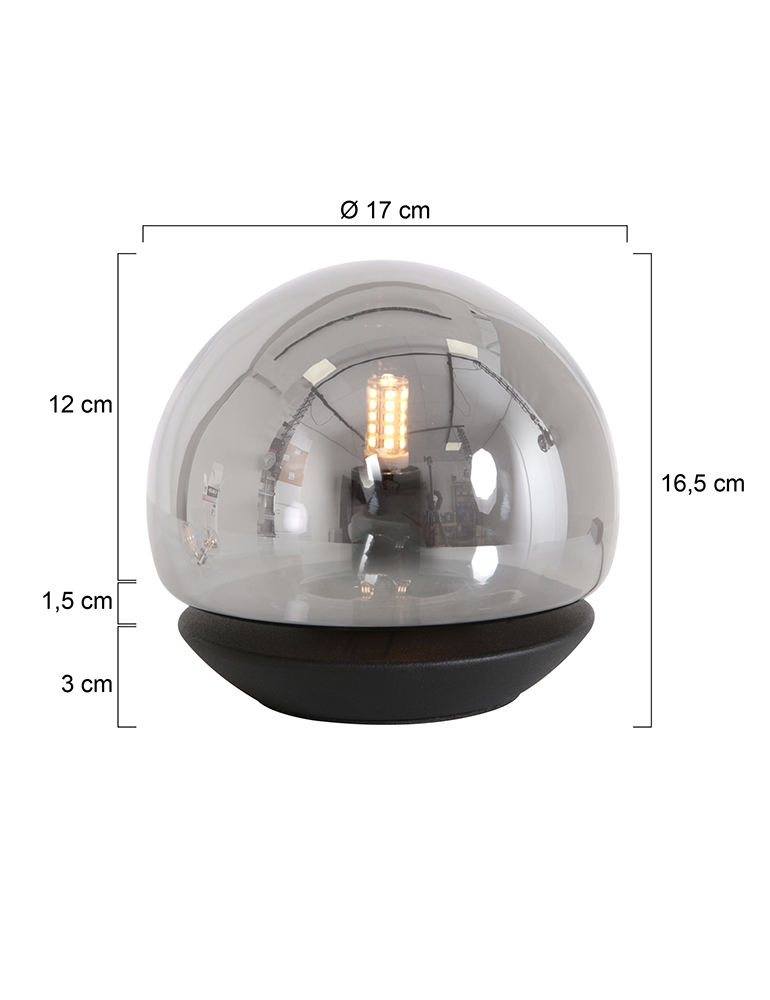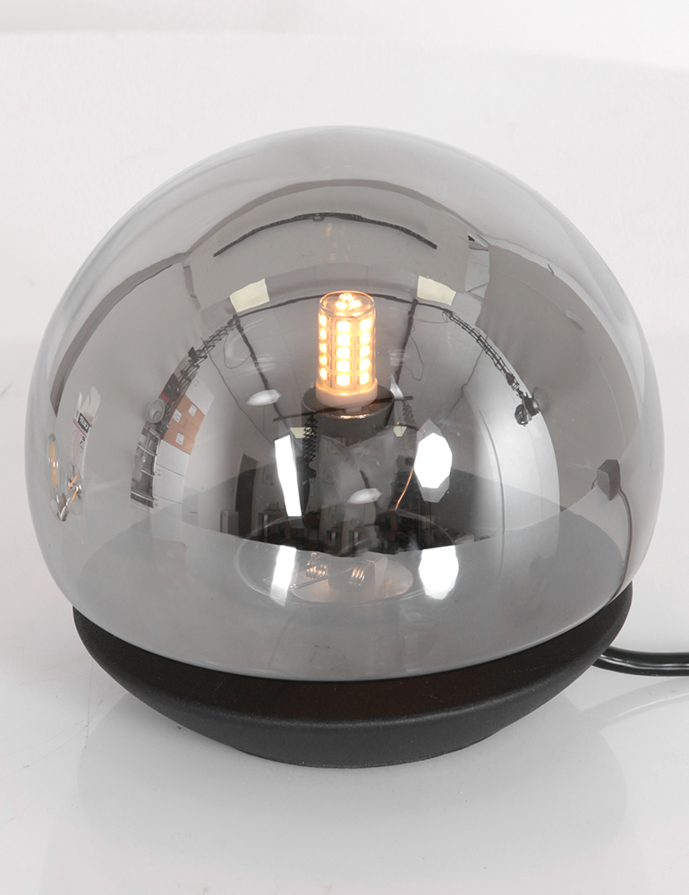 Rauchglas kugelförmige Tischlampe Schwarz Steinhauer Ancilla