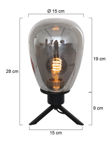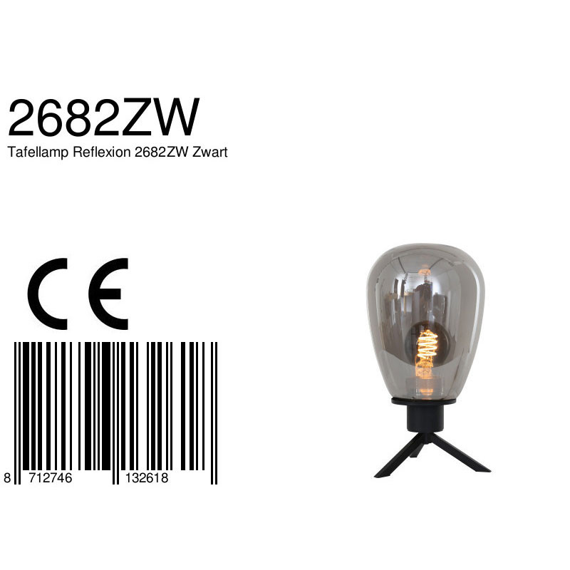 Die schwarze Tischlampe aus der Reflexion-Serie kombiniert einen spiegelnden rauchglasigen Schirm mit einem stabilen Metall-Dreibeinrahmen. Mit einer Höhe von 28 cm ist diese Lampe eine stilvolle Ergänzung für jedes Interieur. Geeignet für eine E27-Lichtquelle bis 40 Watt (nicht enthalten). Das schwarze Kabel mit 150 cm Länge ist mit einem Ein/Aus-Schalter ausgestattet.