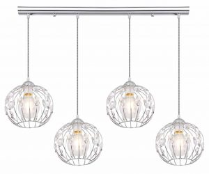 Bringen Sie Ihr Interieur mit dieser glänzenden, chromatischen Hängeleuchte zum Strahlen, die einen Vintage-Flair mit modernem Design kombiniert. Das auffällige Design ist mit K9-Kristallen verziert, die wunderschön in die vier gitterartigen Lampenschirme eingesetzt sind und einzigartige Schatten an Ihre Wände werfen. Mit einer großzügigen Länge von 120 cm ist sie perfekt geeignet, um Atmosphäre in Ihr Esszimmer oder Ihre Lounge zu bringen. Diese Lampe bietet die Freiheit, Ihre bevorzugte E27-Lichtquelle selbst auszuwählen (maximal 4 x 60W), sodass Sie die Lichtintensität und -farbe an Ihren individuellen Stil und Ihre Vorlieben anpassen können. Als nachhaltigere Option empfehlen wir LED-Lampen, und Sie können einen harmonischen Look schaffen, indem Sie weitere Modelle aus derselben Serie hinzufügen.
