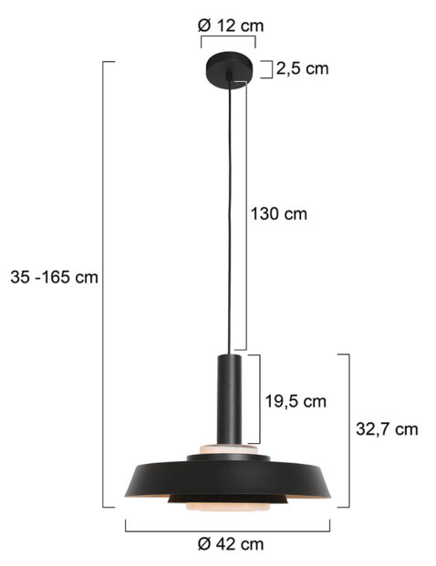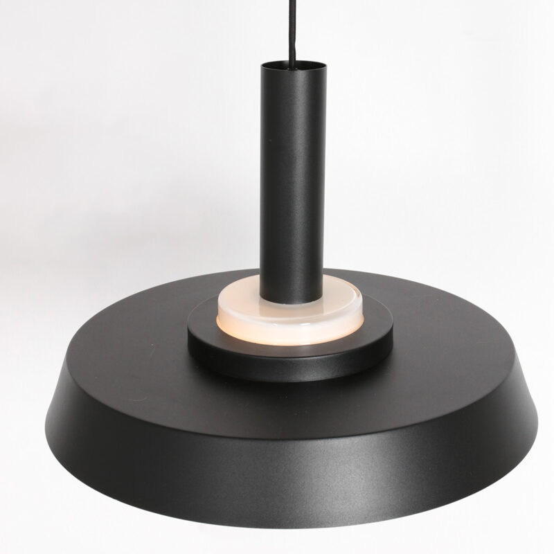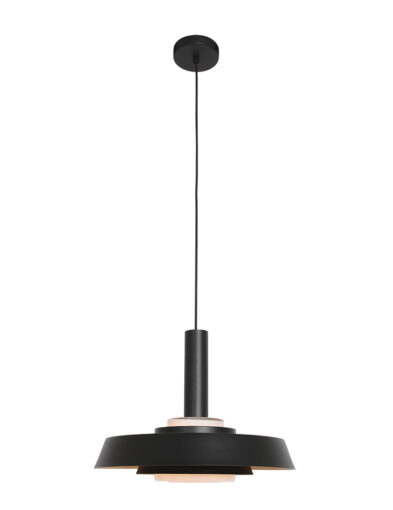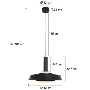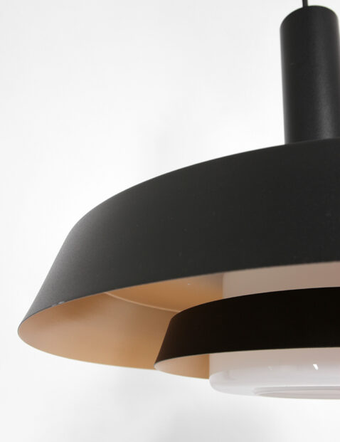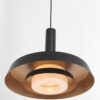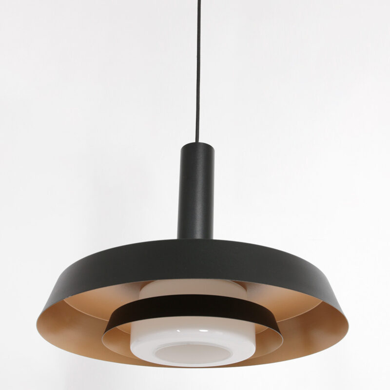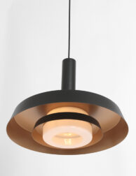 Die Flinter Pendelleuchte von Anne Lighting ist eine elegante Kombination aus modernem und industriellem Design. Die Lampe besteht aus schwarzen Metallringen mit einer warmen, goldfarbenen Innenseite und ist mit einer E27-Fassung ausgestattet. Das weiße Glas an der Oberseite lässt Licht subtil nach oben durchscheinen. Mit einem Durchmesser von 42 cm und einer verstellbaren Höhe zwischen 35 und 165 cm ist diese Lampe perfekt über dem Esstisch oder im Flur.