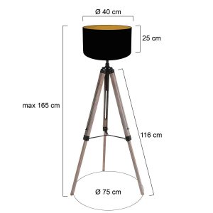 Verleihe deinem Interieur mit dieser retro Stehlampe aus der Triek-Serie eine schicke Ausstrahlung. Die Kombination aus einem schwarz-goldenen Leinen-Schirm und einem robusten Holz-Dreibein-Stativ mit schwarzen Metalldetails macht diese Lampe zu einem stilvollen Blickfang. Die Höhe ist einfach anpassbar, sodass sie perfekt in verschiedene Räume passt. Ausgestattet mit einem Kabel mit eingebautem Schalter für zusätzlichen Komfort.