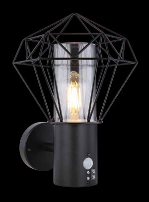 Diese stilvolle schwarze Außenlampe aus Edelstahl ist eine perfekte Ergänzung für jede Hauswand. Ihr Gehäuse aus transparentem Kunststoff und der Schutzgrad IP 44 machen sie ideal für den Außeneinsatz. Der charakteristische gitterförmige Metallschirm hat eine Breite von 22,5 cm und eine Höhe von 34 cm und sorgt für eine angenehme Beleuchtung. Diese Lampe ist mit einer E 27-Fassung ausgestattet, geeignet für eine Lampe bis 15W – wir empfehlen die Verwendung einer LED-Lampe für eine erhöhte Langlebigkeit.