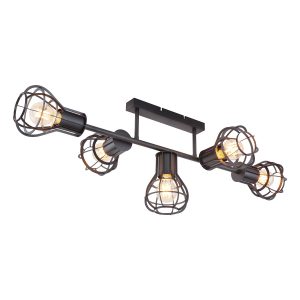 Diese Deckenleuchte aus der Clastra-Serie, mit einem schlichten Design aus mattschwarzem Metall und fünf runden Metallgitterhauben, passt perfekt zu verschiedenen Wohnstilen. Die 90 cm lange Lampe kann mit E27-Lampen Ihrer Wahl ausgestattet werden, sodass Sie die Lichtfarbe und Helligkeit anpassen können.