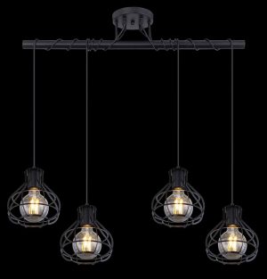 Vintage, Retro und industrielle Stile vereinen sich in dieser Deckenlampe aus mattem schwarzem Metall. Die anpassbaren Kabel verleihen eine persönliche Note. Einfach im Design, ist diese Hängeleuchte ein auffälliges Element in jedem Raum, sei es im Wohnzimmer, in der Küche oder im Esszimmer.
