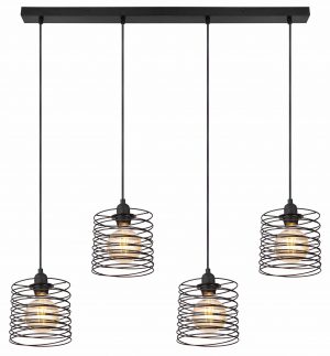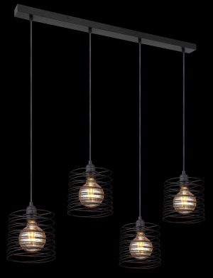 Diese auffällige Pendelleuchte aus der Tilly-Serie zeichnet sich durch ihr wunderschönes Design aus und wird zum Mittelpunkt jedes Raumes. Vier schwarze matte Textilkabel von maximal 1m hängen von einer geraden schwarzen matten Schiene und führen zu E27-Anschlüssen, die jeweils mit einer spiralförmig gewickelten Drahtabdeckung umhüllt sind. Sie können jede Lichtquelle Ihrer Wahl mit einer maximalen Leistung von 60 Watt installieren, um die Lichtfarbe und Helligkeit anzupassen.