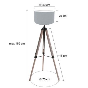 Die Retro-Stehlampe Triek von Mexlite, mit Holz und schwarzem Finish, verleiht Ihrem Büro, Esszimmer, Schlafzimmer oder Wohnzimmer einen vintage Touch. Hergestellt aus Holz und Leinen und ausgestattet mit einer E27-Fassung, bietet diese Lampe eine warme und einladende Beleuchtung. Mit einer verstellbaren Höhe von 125 bis 170 cm und einem Durchmesser von 75 cm ist diese Lampe eine auffällige Ergänzung für jeden Raum.