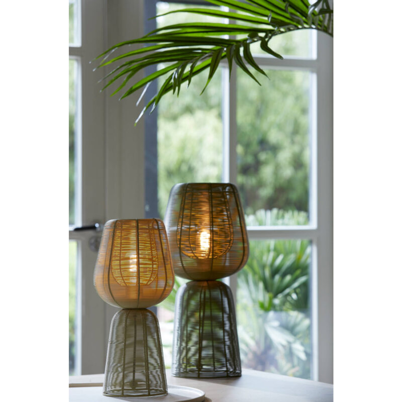 Bringen Sie einen Hauch von Japandi-Stil in Ihr Wohnzimmer mit der Light & Living Aboso Tischlampe. Diese Retro-Lampe, hergestellt aus grünem Metalldraht, fügt Ihrem Interieur eine einzigartige Textur hinzu. Mit einer Höhe von 54 cm ist sie ein auffälliges Stück. Schaffen Sie eine beruhigende Atmosphäre mit dieser Lampe. Perfekt, um eine Ecke oder einen Beistelltisch zu beleuchten.