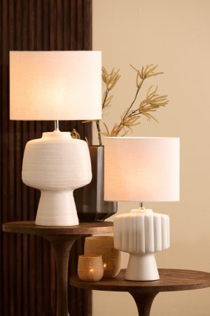 Rippige weiße Keramiklampenbasis Light & Living Gandara
