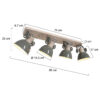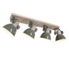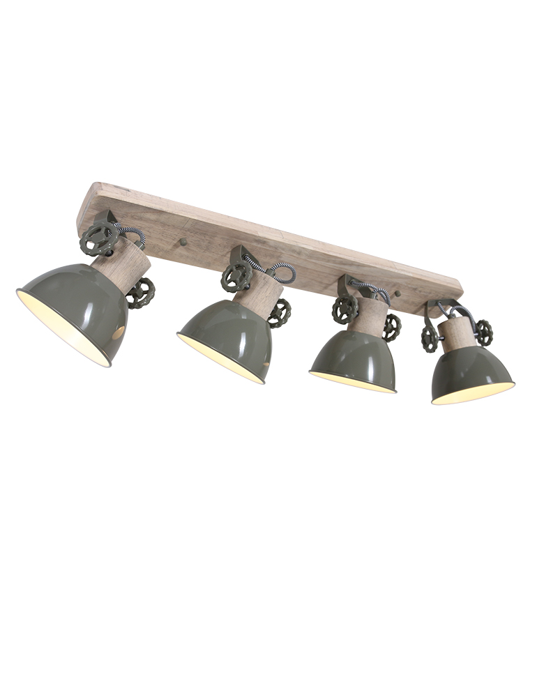 Der Gearwood 4-flammige Deckenstrahler von Mexlite hat eine industrielle Ausstrahlung mit einer Kombination aus Holz und Metall. Die vier verstellbaren Spots haben eine E27-Fassung, geeignet für Lichtquellen bis 40 Watt. Die Gesamtlänge des Spots beträgt 90 cm und die Schirme haben einen Durchmesser von 15 cm. Die Lampe ist dimmbar mit einem externen Dimmer und einer geeigneten Lichtquelle. Erhältlich in Grün, Grau und Weiß.