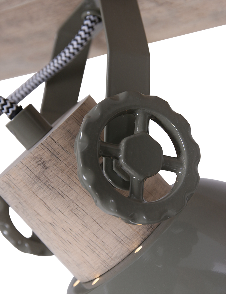 Cool! Dieser vierflammige Spot von Mexlite ist robust und gleichzeitig elegant. Die Details sind phänomenal. Wie gut wird er wohl in eine ländliche oder industrielle Einrichtung passen! Diese vier graugrünen, metallischen Strahler sind auf einer Decken- oder Wandplatte aus Holz befestigt. Sie hängen an einem Metallbügel, haben Rädchen zur Einstellung und eine Holzfassung. Dieses hübsche „Gearwood“ ist für dich!