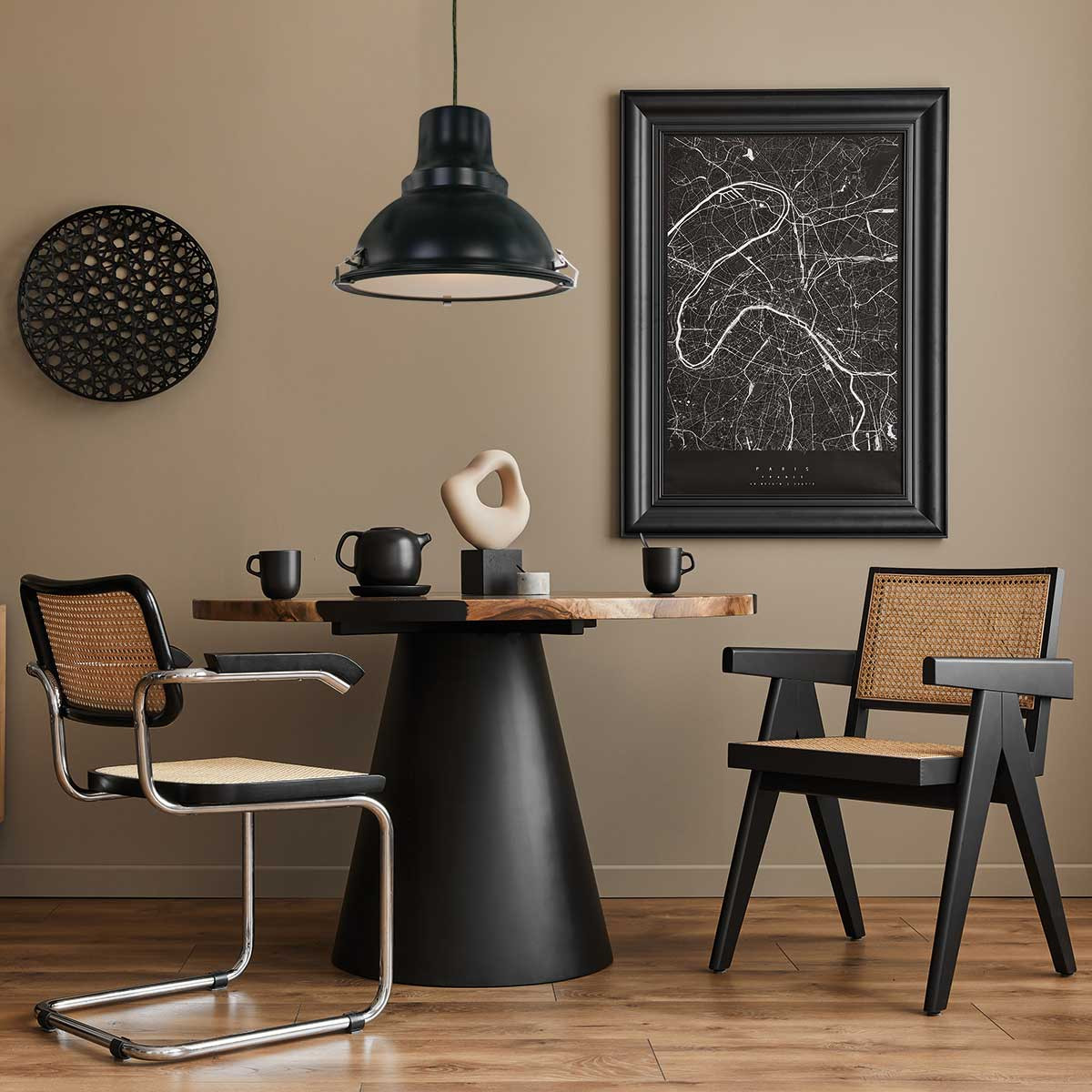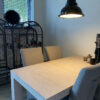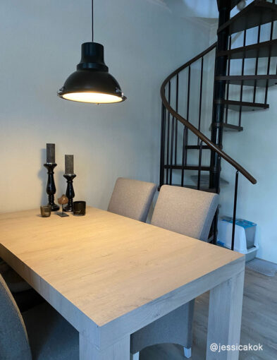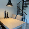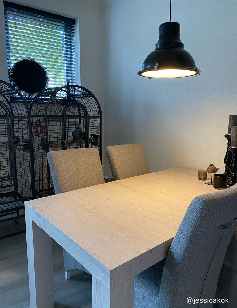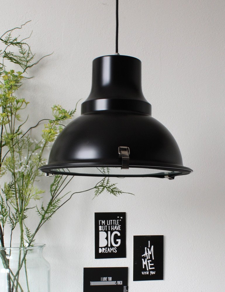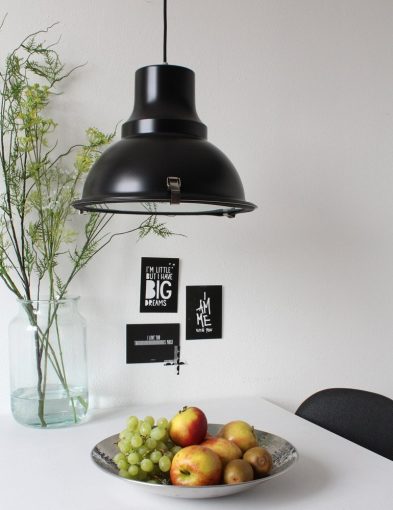 Eine schöne Pendelleuchte über dem Esstisch, einer Bar oder Theke. Die Farbe macht das Kombinieren sehr einfach. Das trendige Aussehen sorgt dafür, dass die Lampe ein schöner Blickfang ist, zum Beispiel über einem Tisch aus Altholz.