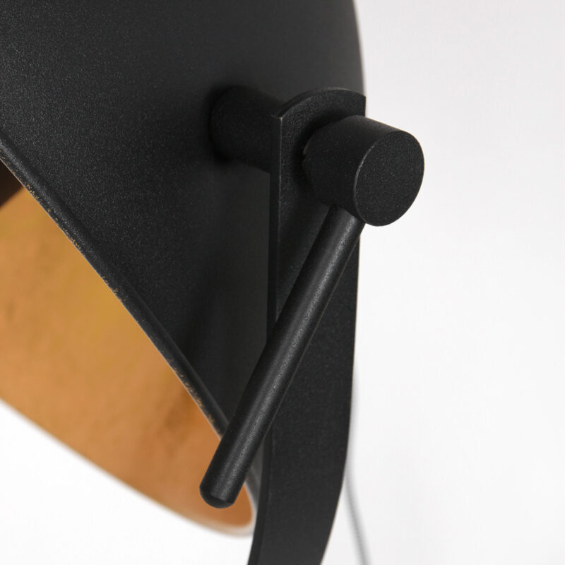 Industrielle schwarze Stehlampe mit goldener Sonnenblendenhaube Mexlite Sunflower