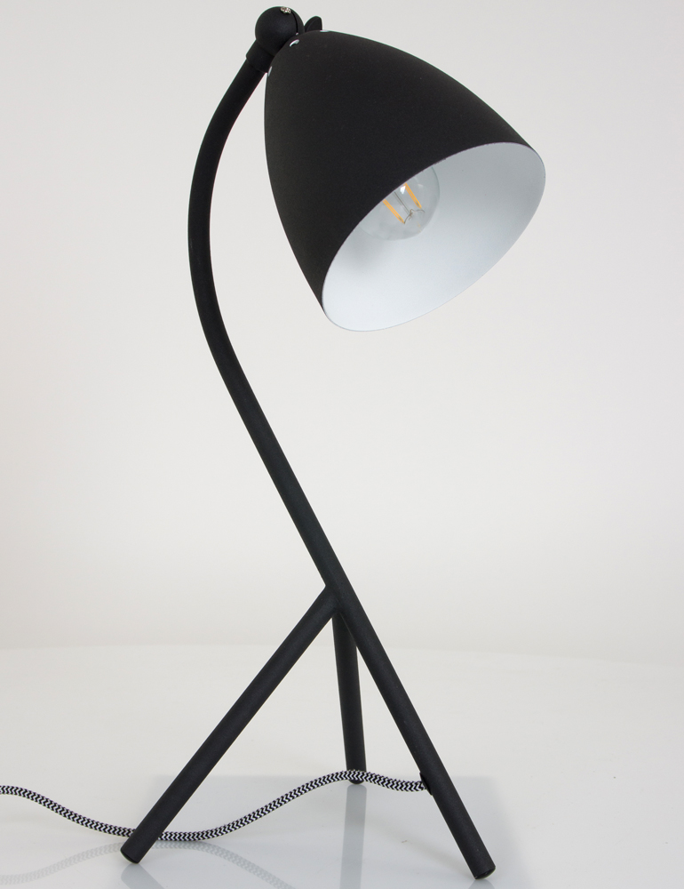 Elegantes Einfaches. Diese Tischlampe ist wirklich ein Schatz. Mexlite hat mit „Lina“ eine einfache moderne Tisch- oder Schreibtischlampe entworfen. Ein elegantes Dreibein trägt den verstellbaren Lampenschirm. Alle Teile sind schwarz, außer der Innenseite des Schirms, die weiß ist für eine bessere Lichtausbeute. „Lina“ ist eine dankbare Lampe für dich, sie verlangt wenig und passt zu allen Wohnstilen und Farben.