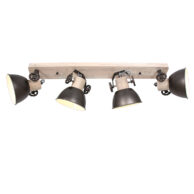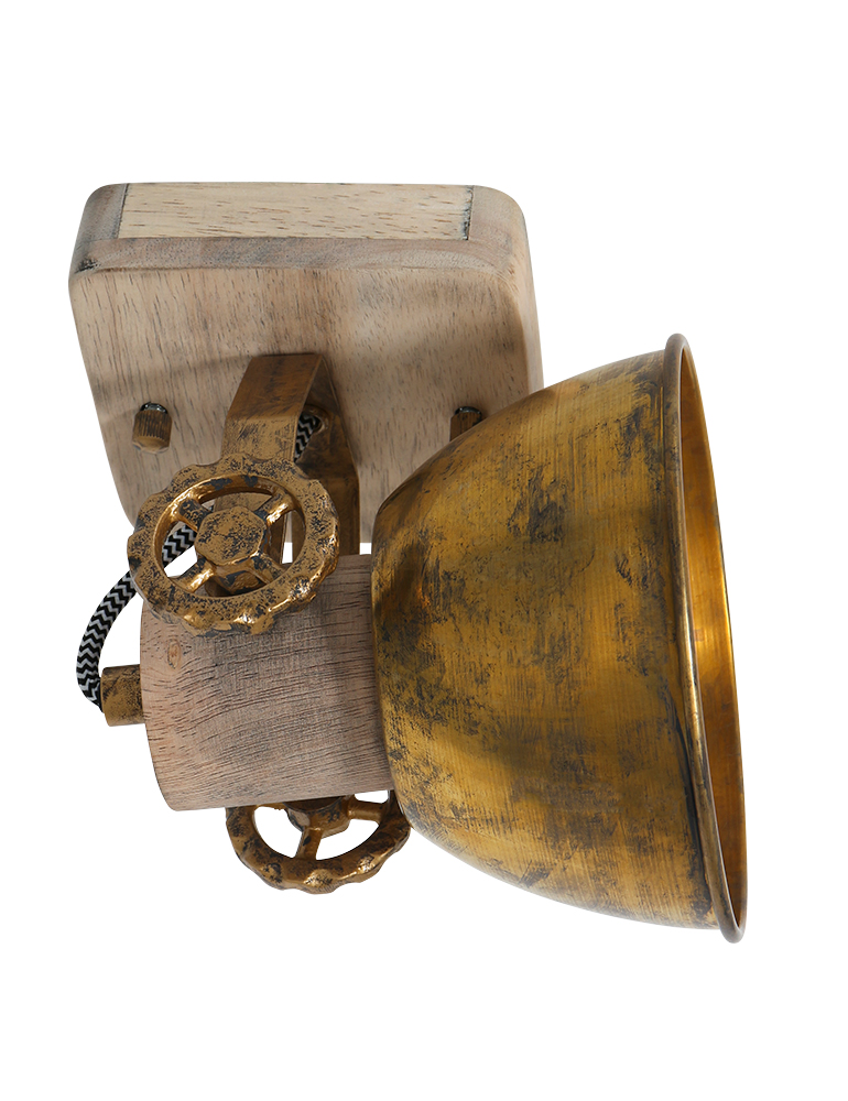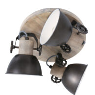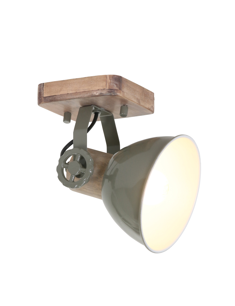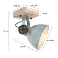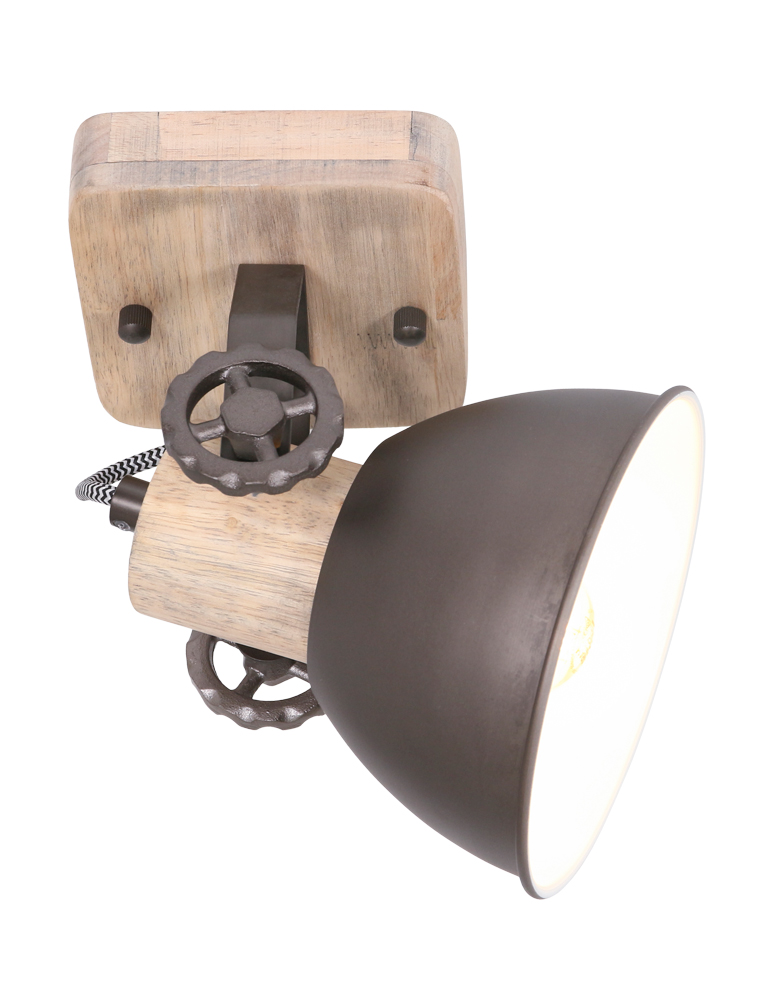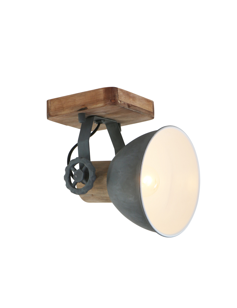 Der moderne, nickel-farbene Decken- oder Wandleuchten Gearwood von Mexlite ist eine Kombination aus industrieller Robustheit und raffinierten Details. Der matte Nickel-schirm und die Holzelemente verleihen der Lampe ein zeitgemäßes Aussehen. Die verstellbaren Räder ermöglichen es, den Spot nach Belieben zu drehen und zu neigen. Ausgestattet mit einer E27-Fassung, geeignet für Lichtquellen bis 40 Watt. Der Schirm hat einen Durchmesser von 15 cm und eine Gesamthöhe von 19 cm. Dimmbar mit einem externen Dimmer.