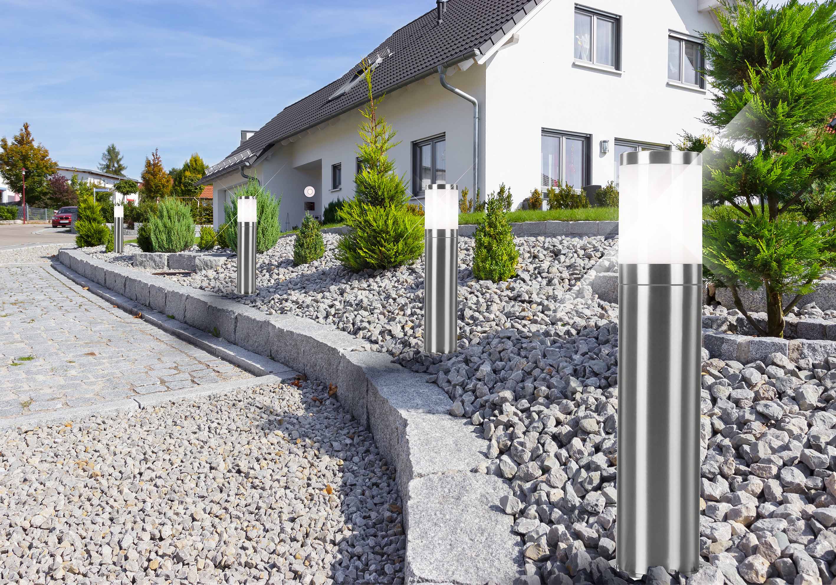 Genießen Sie stimmungsvolle Außenbeleuchtung mit der eleganten Stehlampe der Xeloo-Serie, die mit einem IP44-Schutzgrad gegen Spritzwasser entworfen wurde. Mit der Möglichkeit, die Lichtstärke der 50 cm Edelstahl-Lampe selbst einzustellen (max. 60W), bietet diese Lampe die perfekte Balance zwischen Funktionalität und Stil. Wählen Sie eine E27-Lampe Ihrer Wahl, obwohl wir LED-Lampen aufgrund ihrer langlebigen Leistung und Energieeffizienz empfehlen. Ergänzen Sie Ihre Außenbeleuchtung mit Wand- und Sockelleuchten aus derselben Xeloo-Serie für ein harmonisches Erscheinungsbild.