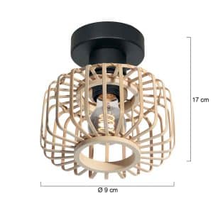 Dank der E27-Fassung hast du die Freiheit, die Lichtquelle zu wählen, die am besten zu deinen Wünschen passt. Die schwarze Metallbasis verleiht der Lampe einen modernen Kontrast, wodurch sie mühelos mit verschiedenen Einrichtungsstilen kombiniert werden kann. Eine kompakte, aber stilvolle Deckenleuchte, die für ein natürliches und harmonisches Erscheinungsbild sorgt.