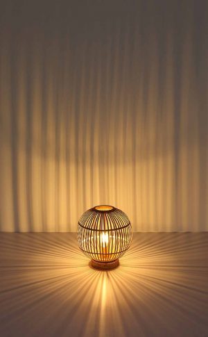 Runde Boho Tischlampe Natur Bambus Globo Hildegard