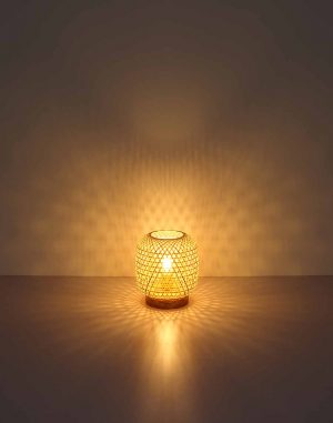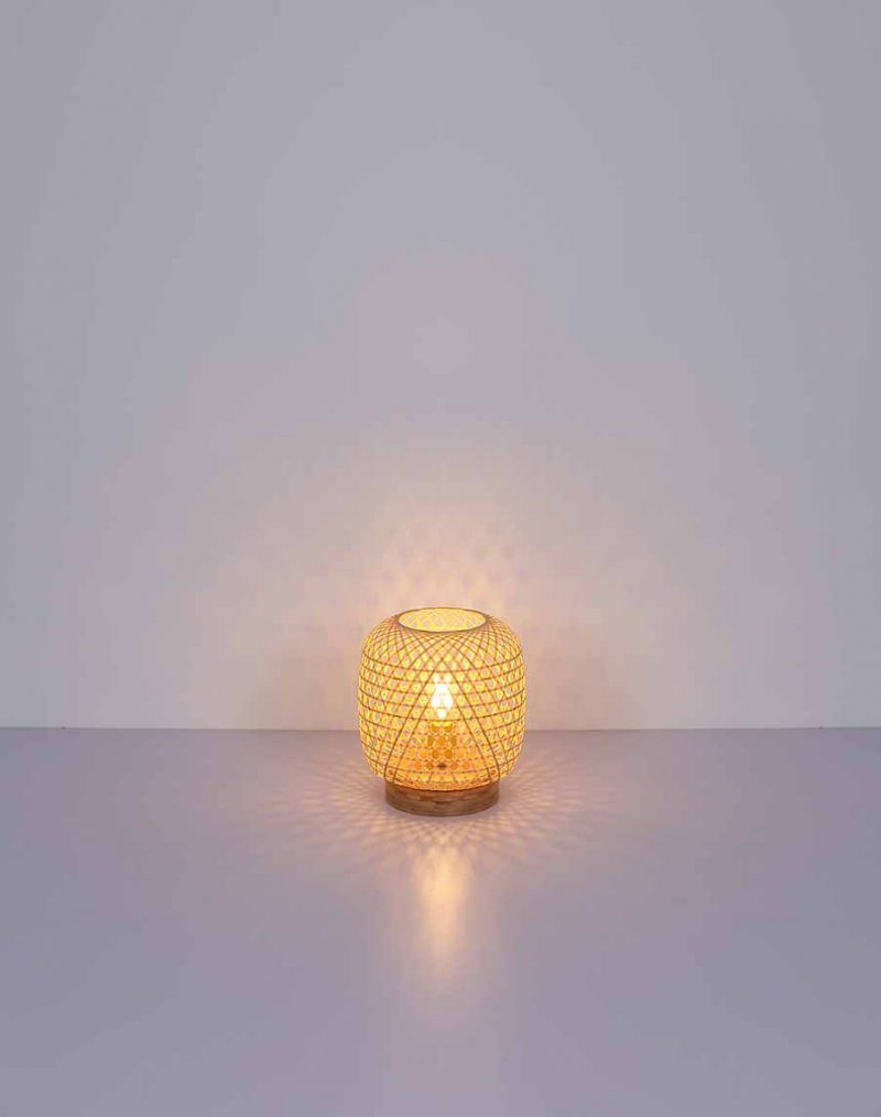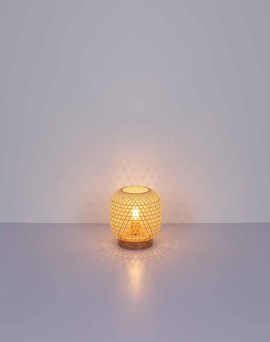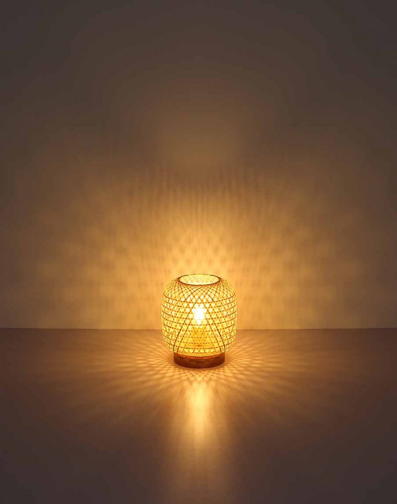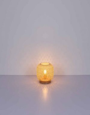 Runde Boho Tischlampe Natur Bambus Globo Mirena