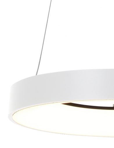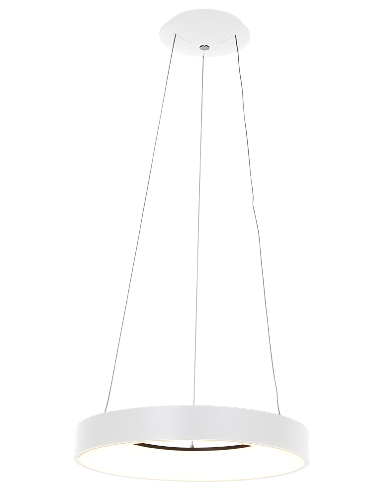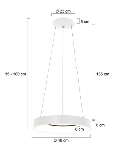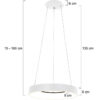 Die weiße Hängeleuchte aus der Ringlede-Serie ist mit einem austauschbaren 30 Watt LED-Modul ausgestattet. Die Lichtfarbe beträgt 2700 Kelvin mit einer Lichtausbeute von 3600 Lumen. Die Lampe ist mit einem externen Wanddimmer dimmbar (nicht im Lieferumfang enthalten). Bei der Montage kann die Höhe von 15 cm bis 160 cm eingestellt werden. Der Lichtkreis hat einen Durchmesser von 48 cm und eine Höhe von 6 cm.