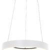 <pDiese elegante runde Ringlede Hängeleuchte benötigt wenig, um ein modernes Statement zu setzen! Von einer weißen Deckenplatte verlaufen drei dünne, verstellbare Kabel schräg auseinander. Diese halten sicher den weiß beschichteten, rostfreien, ringförmigen Lampenschirm. Die weiße Kunststoffinnenseite reflektiert das außen dimmbare LED-Licht optimal. Schön im Flur, über einem runden Tisch oder mit zwei über einem rechteckigen Tisch.