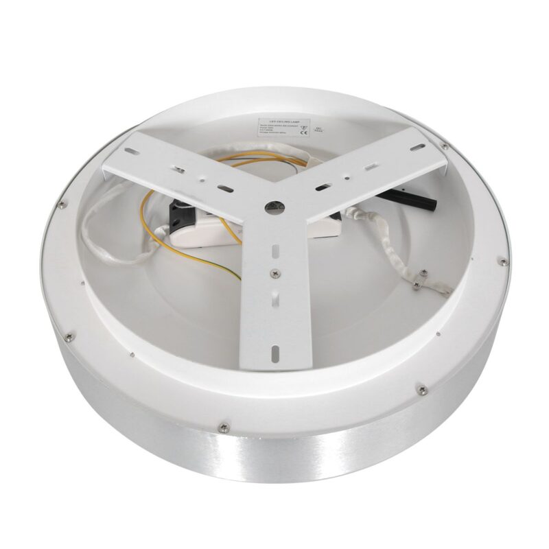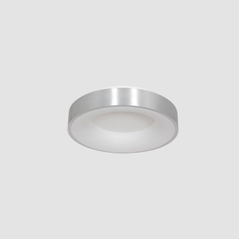 Die silberne Ringlede Deckenleuchte bietet eine stilvolle und funktionale Beleuchtung. Das austauschbare 30 Watt LED-Modul liefert 2800 Lumen mit einer warmen Lichttemperatur von 2700 Kelvin. Der integrierte dimmbare Treiber ermöglicht es, die Lichtstärke über einen Wandschalter (nicht im Lieferumfang enthalten) zu regulieren. Mit einem Durchmesser von 30 cm und einer Höhe von 9 cm fügt sich diese Lampe mühelos in verschiedene Einrichtungsstile ein.