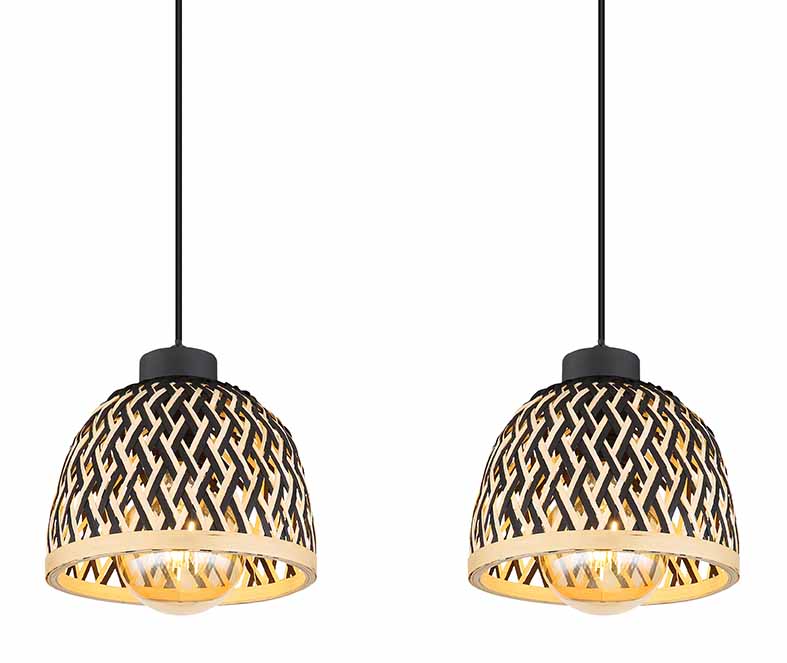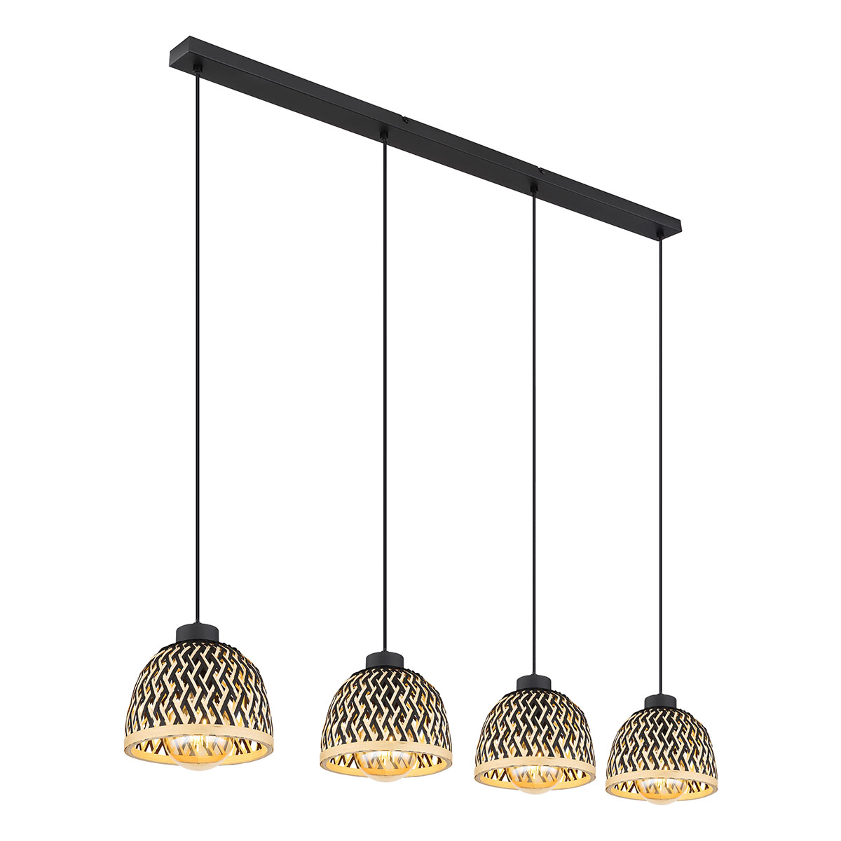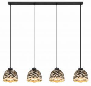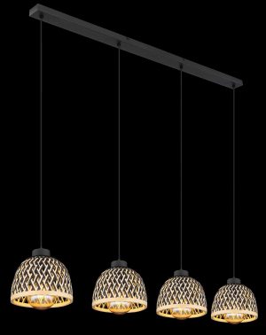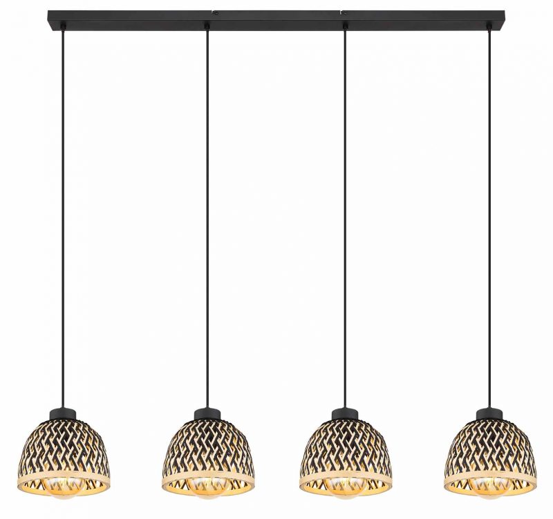 <pDiese stilvolle Pendelleuchte aus der COLLY-Serie kombiniert Bambus und Metall für eine raffinierte Optik. Die vier schwarzen Kabel von 1,2 m sind an einer schmalen Deckenhalterung befestigt und jeweils mit einer Bambushülle in Schwarz und natürlichen Nuancen ausgestattet. Jede E27-Fassung unterstützt Lampen bis zu 15 Watt, sodass Sie die Helligkeit und Farbgebung des Lichts anpassen können. Diese Lampe verleiht Ihrem Interieur eine warme und natürliche Note.