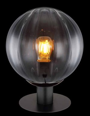 Diese Tischlampe aus mattem schwarzen Metall und rauchfarbenem Glas hat einen Durchmesser von 230 mm und eine Höhe von 295 mm. Mit einem 1,5 m langen Kabel und einem Kippschalter bietet diese Lampe ein modernes Aussehen und eine gemütliche Atmosphäre. Benötigt eine E27 12W 230V Glühbirne (nicht enthalten).