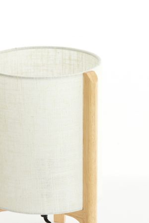 Runde Tischlampe in Creme mit Holzfuß Light & Living Litto
