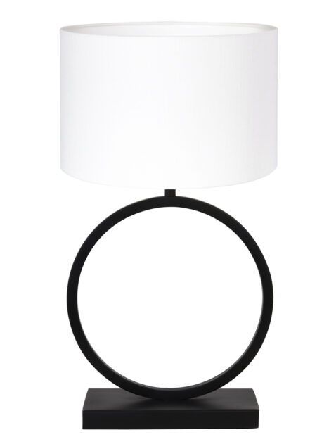 Runde Tischlampe mit weißem Leinenschirm Light & Living Liva schwarz