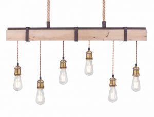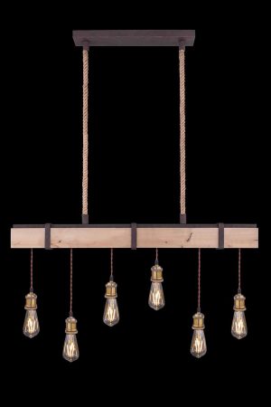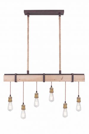 Die Pendelleuchte MUCHA ist ein besonderes Highlight mit rostfarbigem Metall, kombiniert mit natürlichem Holz und freihängenden Leuchten ohne Schirm. Die sechs Leuchten hängen an einem Balken und ragen bis zu 100 cm in den Raum hinein. Mit E27-Anschlüssen (max. 60W) können Sie die Leuchten frei wählen. Wir empfehlen LED-Leuchten wegen ihrer Energieeinsparung und langen Lebensdauer.