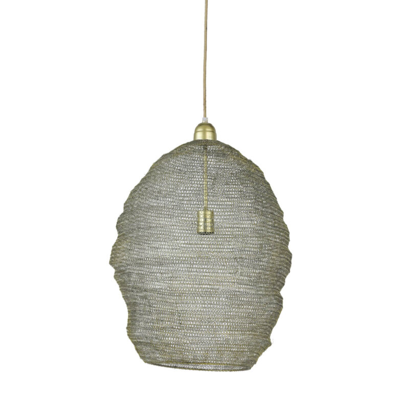 Die Light & Living Nikki Hängeleuchte kombiniert einen rustikalen Look mit einem goldenen Textildesign. Diese Lampe mit einem Lichtpunkt ist ideal für Esszimmer, Schlafzimmer und Wohnzimmer. Das textile Material sorgt für eine warme und luxuriöse Ausstrahlung. Die E27-Fassung ermöglicht einen einfachen Austausch der Lichtquelle. Fügen Sie Ihrem Interieur einen Hauch von Glamour hinzu für eine raffinierte Atmosphäre.