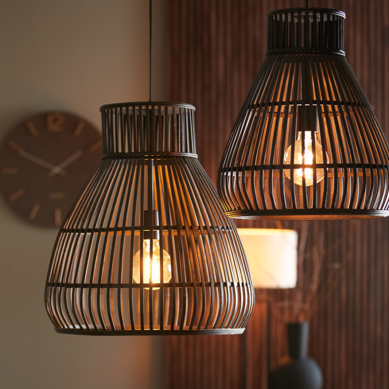 Holz ist wieder voll im Trend! Du suchst schon lange nach einer schönen Pendelleuchte für dein ländliches, botanisches oder retro-inspiriertes Zuhause. Wir haben Hunderte von Modellen, die zu deinem Wohnstil passen. “Timaka”, entworfen von Designer Light&Living, ist nur eines davon. Die aus Holzlatten gefertigte Lampe hat eine Karaffenform und ist matt schwarz. Bring die Siebziger mit dieser schönen “Timaka” zurück ins Haus!