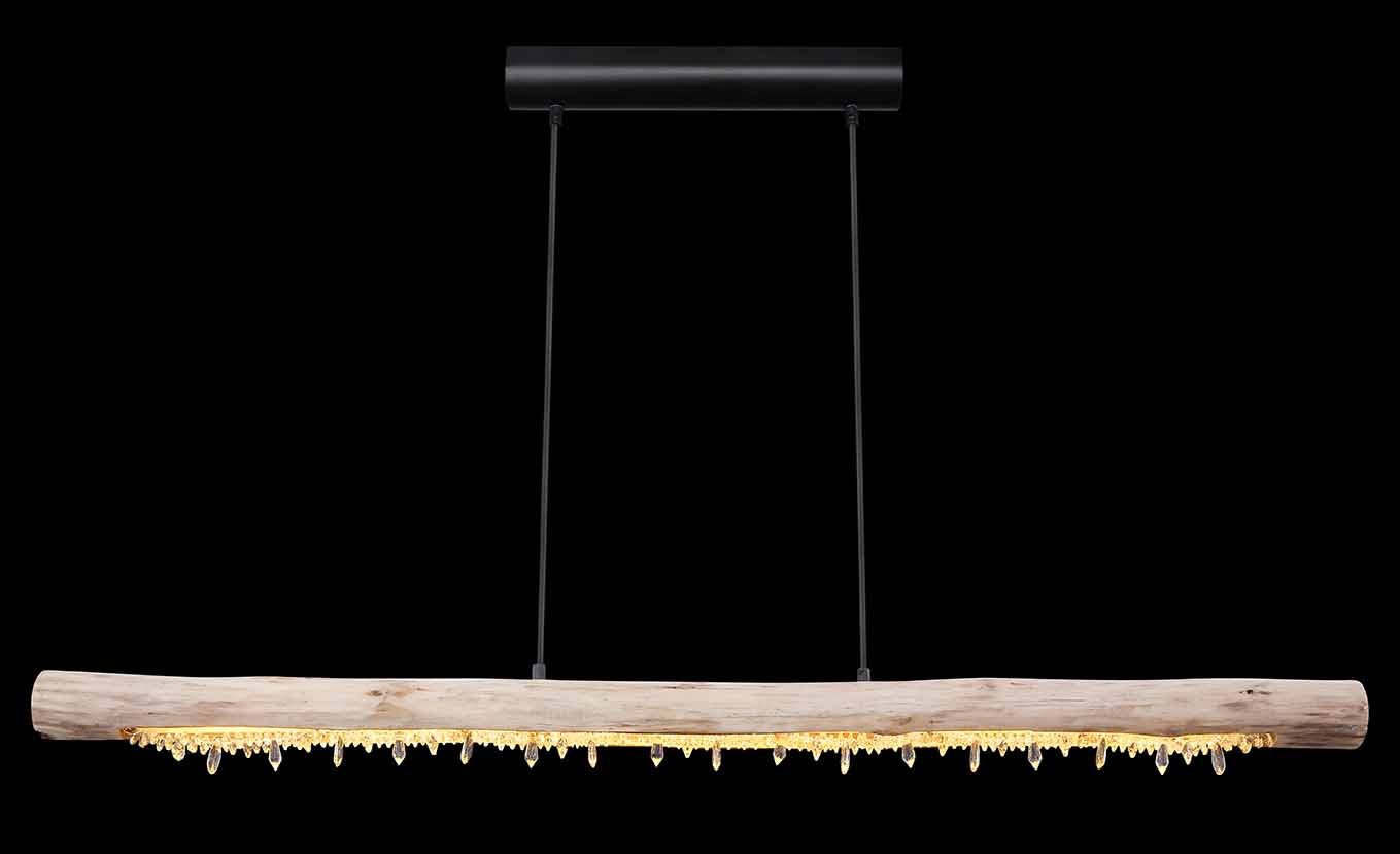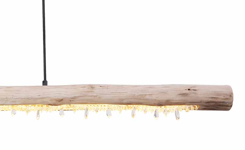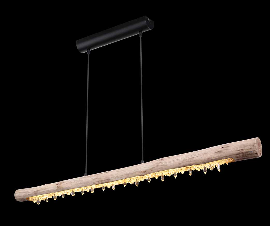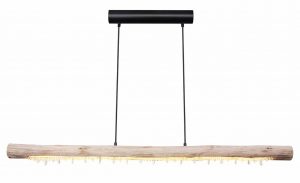 Diese Hängeleuchte kombiniert moderne und klassische Stile. An den hängenden schwarzen Kabeln befindet sich ein Balken aus natürlichem Holz, der mit klaren Acrylkristallen verziert ist und ein Blickfang in Ihrem Raum darstellt. Die mitgelieferte 20 Watt LED-Lampe liefert bis zu 1030 Lumen Licht mit einer warmen Lichtfarbe von 3000 Kelvin. Ideal für Ihr Wohn- und Esszimmer.