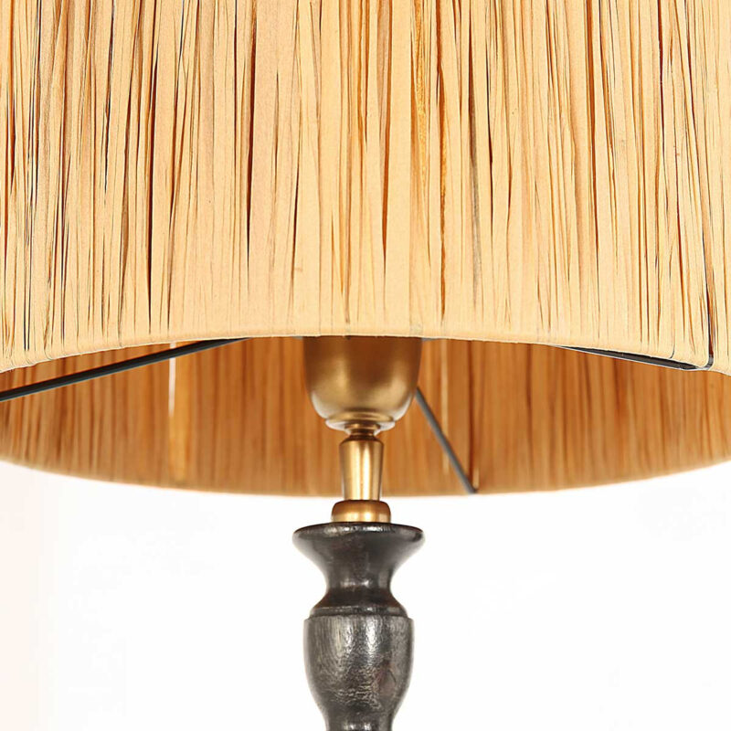 Rustikale schwarze Tischlampe mit Rattanschirm Steinhauer Bois