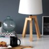 Tischlampe Beige Holz Stoffschirm Mexlite Sabi